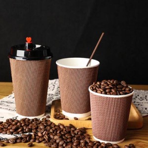 Ripple wall paper coffee cups are also known as corrugated wall or triple wall coffee cups.The ripple wall take-away cups consist of a standard paper cup with an outer layer made from corrugated cardboard. This layer gives the cup its signature ripple effect and to guarantee your clients’ fingers remain cool while they’re grasping cups of your delicious hot beverages.