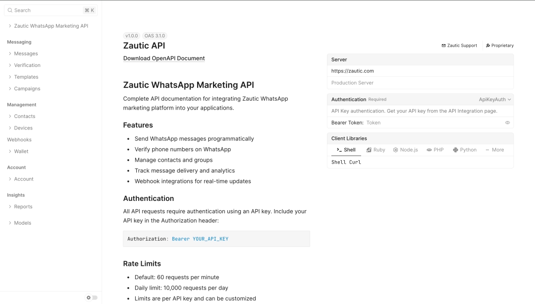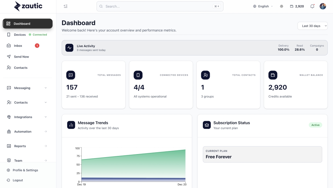 While the visual interface appeals to business owners, Zautic’s core power lies in its WhatsApp API. The platform allows software engineers to bypass the complexity of the official Business API while retaining full programmatic control.